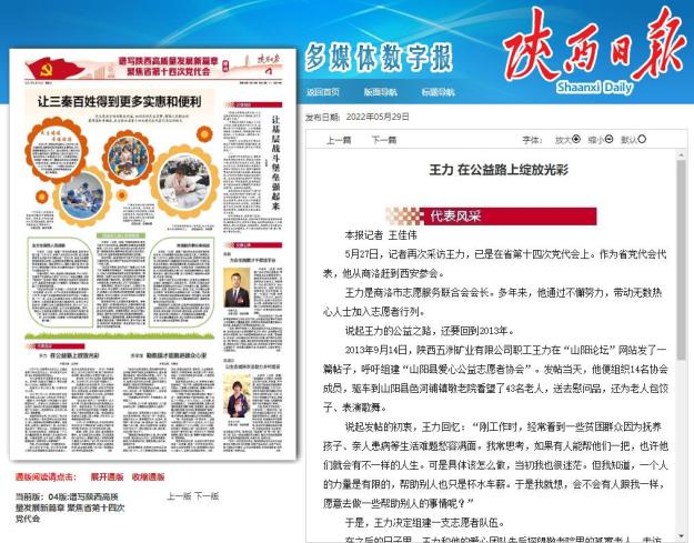 5月27日,记者再次采访王力,已是在省第十四次党代会上。作为省党代会代表,他从商洛赶到西安参会。