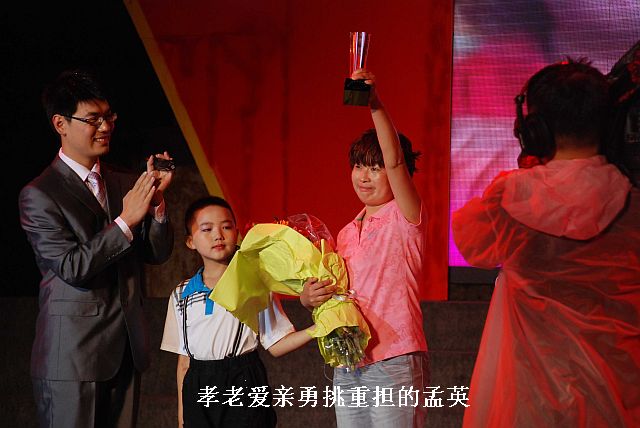 组委会推荐理由:十七岁当家,二十三年辛劳,命运多舛,坎坷不断,她在岁月的暴风雨中面带微笑,坚韧不拔。 颁奖辞:历经波折,意志坚定;饱受艰辛,内心刚强。柔弱的臂膀,扛起家庭的重担;志愿者行动,让爱传递。